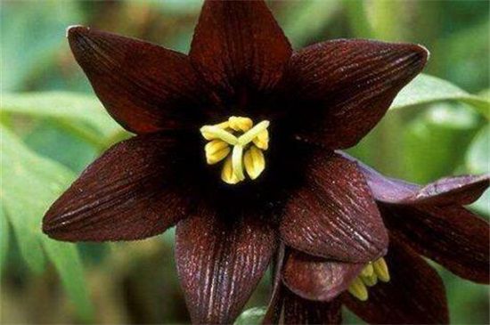 黑百合也是一种黑色的花卉植物,其花期主要是在夏天,花色是紫褐色。开花时黑百合的花头会微微向下低垂,看起来就像是一个非常孤傲的美丽少女微微垂头一样,有着其独特风姿。