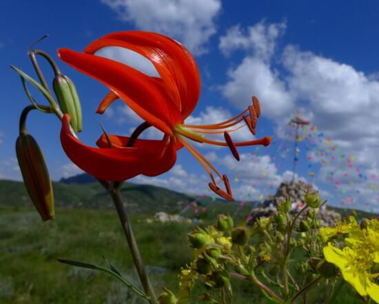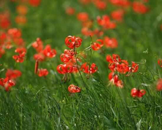 山丹花叶长纤细、花色鲜艳,外翻下垂,犹如晚霞又似火焰,非常漂亮。山丹花的花朵数量代表着它的年龄,一年增加一朵花。