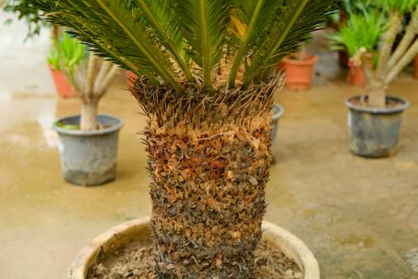 苏铁的树干可以生长到2m左右,有时候甚至能长到8m左右。它的叶子为羽毛的形状,并且是从茎的顶端位置生长出的,下层有稍微的弯曲,上层一般是向斜着向上伸展的。雄花为圆柱的形状,可以生长到30-70cm左右,种子为卵圆形或者是倒卵圆形,颜色为桔红或者是红褐色。开花时间一般是在6-8月份,10月份左右种子成熟。