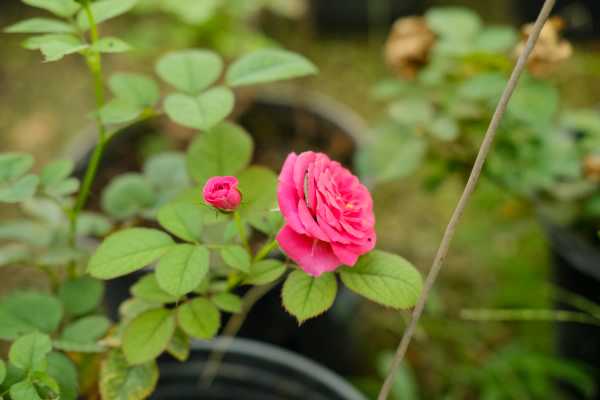 月季的扦插多在春季或秋季进行。选择10厘米长带有3-4个芽的硬枝,将下端斜切,并摘除基部的叶子。用园土和河沙配制盆土,将枝条插入其中。然后用木条再周围搭一个支架,并罩一层塑料膜。养护时注意定期通风和喷水,同时还要把温度控制在23-27℃之间,这样很快就会生根发芽。