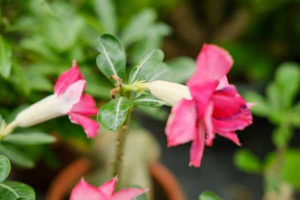 沙漠玫瑰一年之中会开两次花,花朵非常艳丽鲜红,很是别致,只要养护得当,会在每年的四五月份开花,到了九十月份还会再开一次。影响开花的因素,温度是最重要的一点,保持在15-25℃才适宜开花。还需适当的施加水量,保障生长。阳光的照射也是很重要的一点。