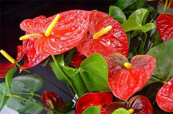 红掌的叶子、花朵都比较大,而且红艳美丽,具有着极高的观赏价值,它可以起到招财进宝的风水作用,其实红掌通常寓意着金钱的含义,将其摆摆在室内养殖,可以招引周围的福气,使主人工作、事业上带来幸运。