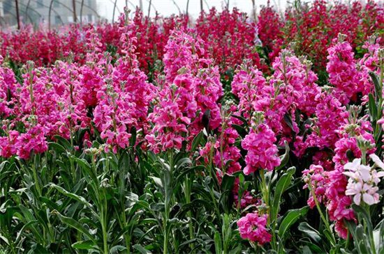 紫罗兰的花朵比较多,而且花形较大,它的花亭向上伸展,花萼直立生长,主要为椭圆形,长度为15公分左右,花色有淡红、紫红、白色,而金鱼草的花色丰富多样化,有白、淡红、深红、肉色、深黄等,而且花朵较小,大约为3~5公分左右。