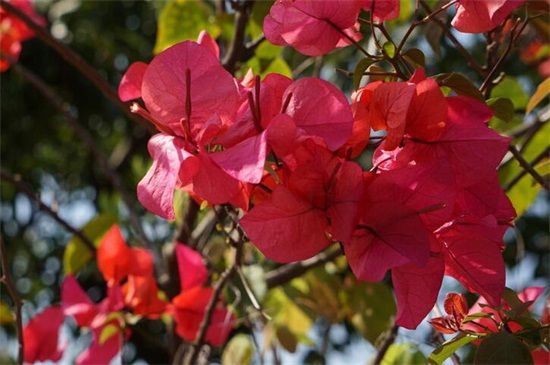 三角梅的枝叶生长过于迅速,造成营养成分被过多消耗,也会让其出现长叶不开花的现象。要将上面的旺盛枝条进行疏剪,而且还有剪除多余的分枝和弱枝、老枝,让三角梅能够正常开花。