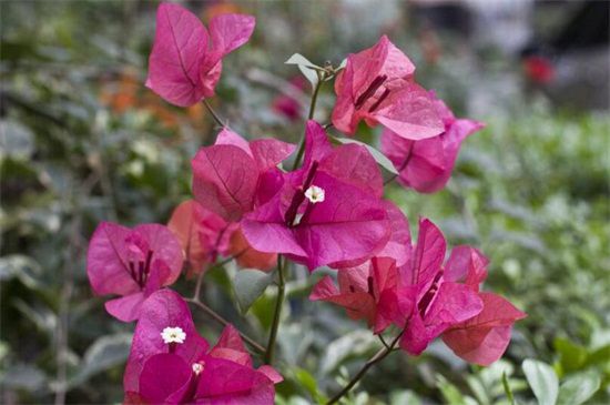 三角梅秋天的枝条生长迅速,需要及时进行修剪,并打顶摘心控制三角梅整体的生长高度,还要将密枝和徒长枝进行修剪,避免营养的过多消耗,让三角梅保持良好的株型更具有观赏价值。