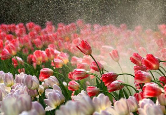 3、郁金香冬天棚室促成栽培时,棚室的气温和湿度主要通过通风来调节,使室内保持茎叶生长和现蕾开花的最好气温。同时,在鳞茎贮藏期,同样是通过通风来调节室温,以减少病虫感染的机会。