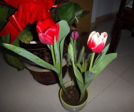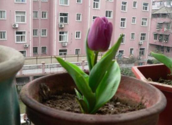 2、郁金香花盆转动,由于植物具有趋光性,要经常转动花盆,使茎能直立生长而不倾斜,整株长势匀称、漂亮。