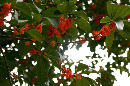 丹桂的花朵非常具有观赏价值,花色多为橙黄、橙红及其朱红色,看上去颇为喜庆,是花色最艳的品种。但在同等情况下,丹桂的花朵数量要比金银二桂的少一些。