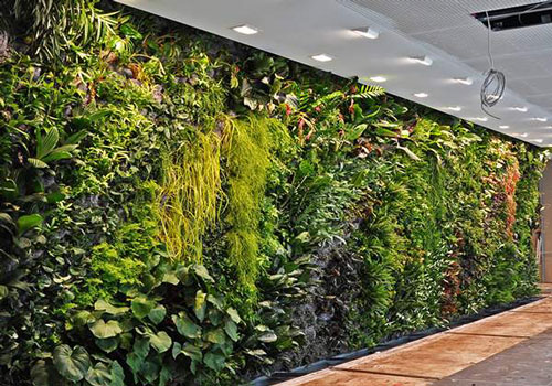 植物对声波具有吸附能力,当噪音等声波通过稠密的枝叶冠幅时,约有百分之二十六的声波被吸附掉。而植物墙使平面种植变为立体种植增加了植物的密稠度并节约空间,更能起到吸音降噪的作用。